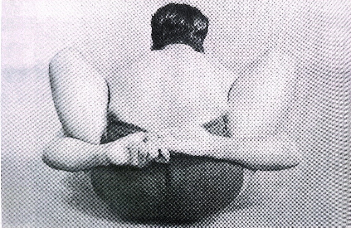 -4. 한속씩 떼어 등뒤로 가져가 양손을 맞잡아 줍니다.